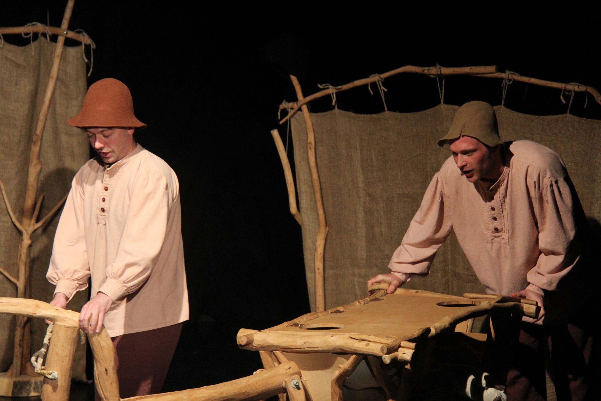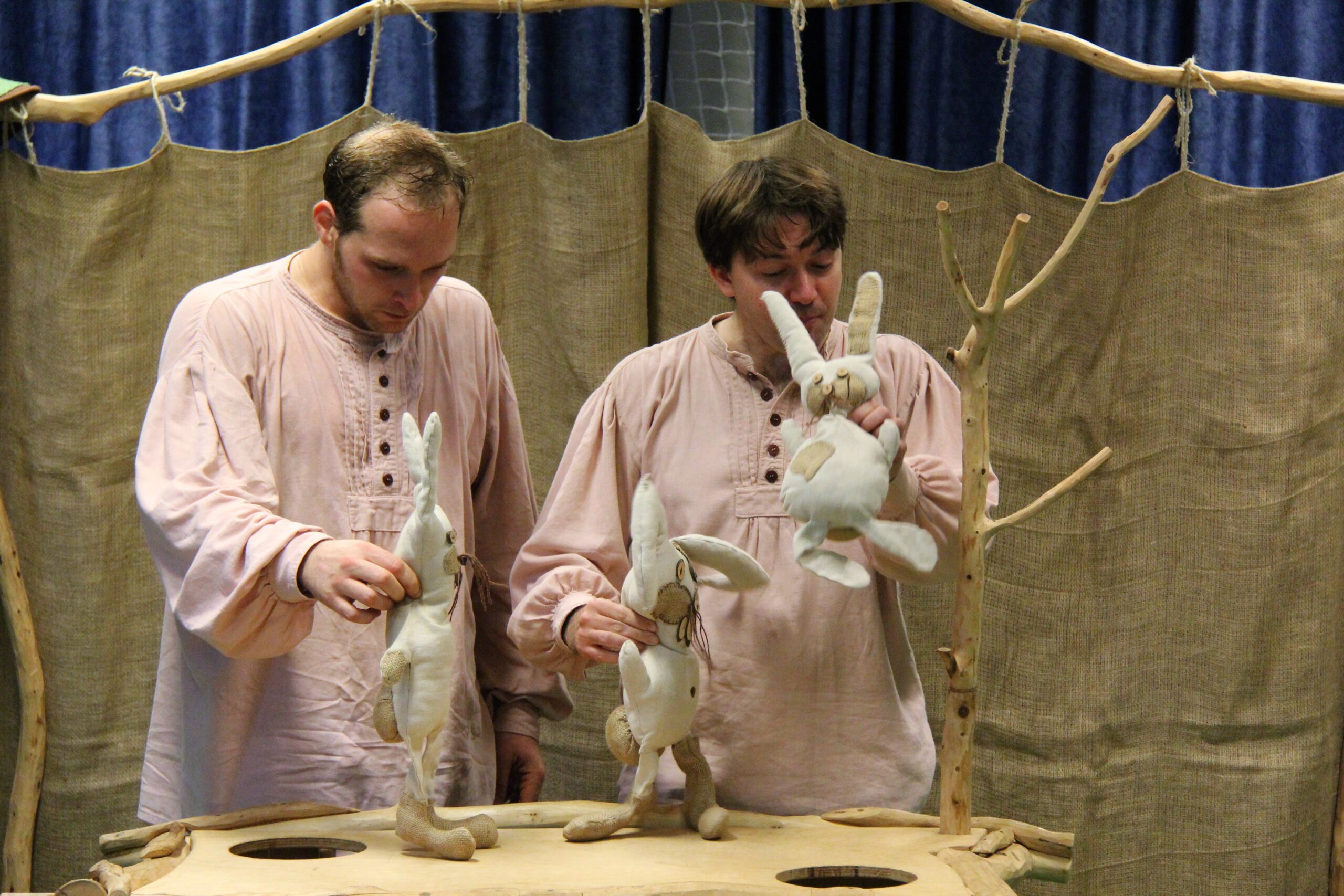 Fut robog a kicsi kocsi…, A kismalac és a farkasok, vagy A három nyúl történetei generációkat kötnek össze. A Móricz Zsigmond, Zelk Zoltán, Kányádi Sándor, Weöres Sándor verseiből, verses meséiből összeállított előadás igazi, felszabadult játék kicsiknek és kicsit nagyobbaknak. A két vándor szekerét húzva érkezik meg a játéktérre, ahol pillanatok alatt varázsolnak bábszínpadot szekerükből, díszletet akár a kalapjukból is.