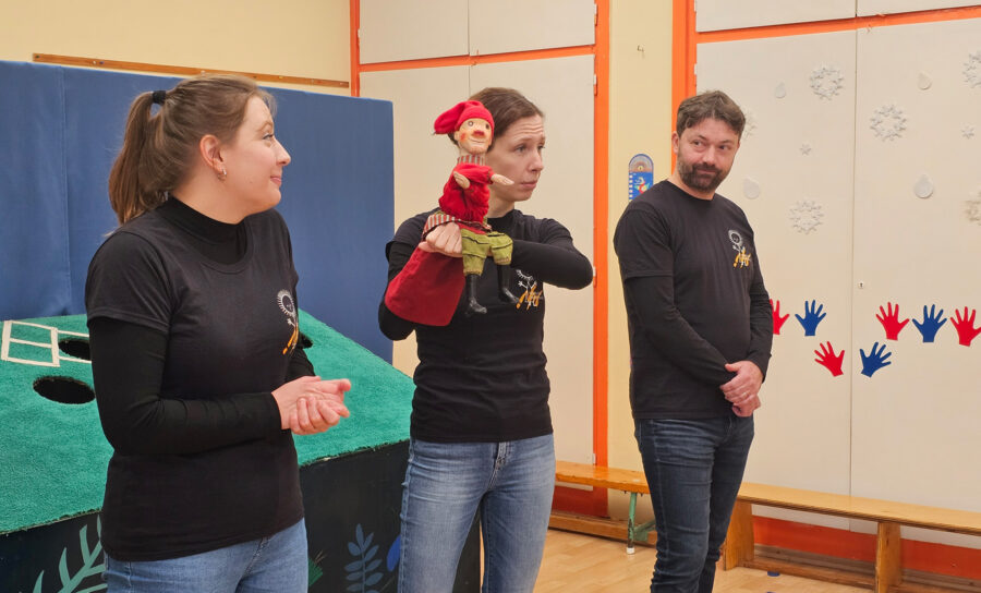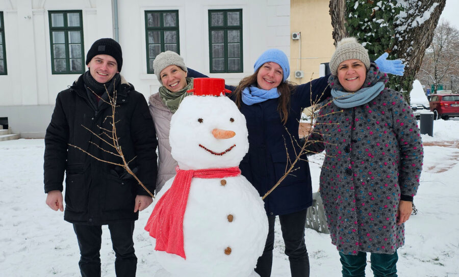 A sűrű hóesésben sem tétlenkedtünk, a próbák között orkánkesztyűt húztunk, s felépítettük Fagyit. A hóember igazi szelfipontként várta, hogy a gyermekek fotózkodjanak vele, a szülők pedig elküldjék a képet az alkotóknak. A beküldők között kisorsoltunk egy szerencsést; Veszelka Miki nyert jegyet a Derülj, derülj asztalkám január 17-ei bemutatójára.