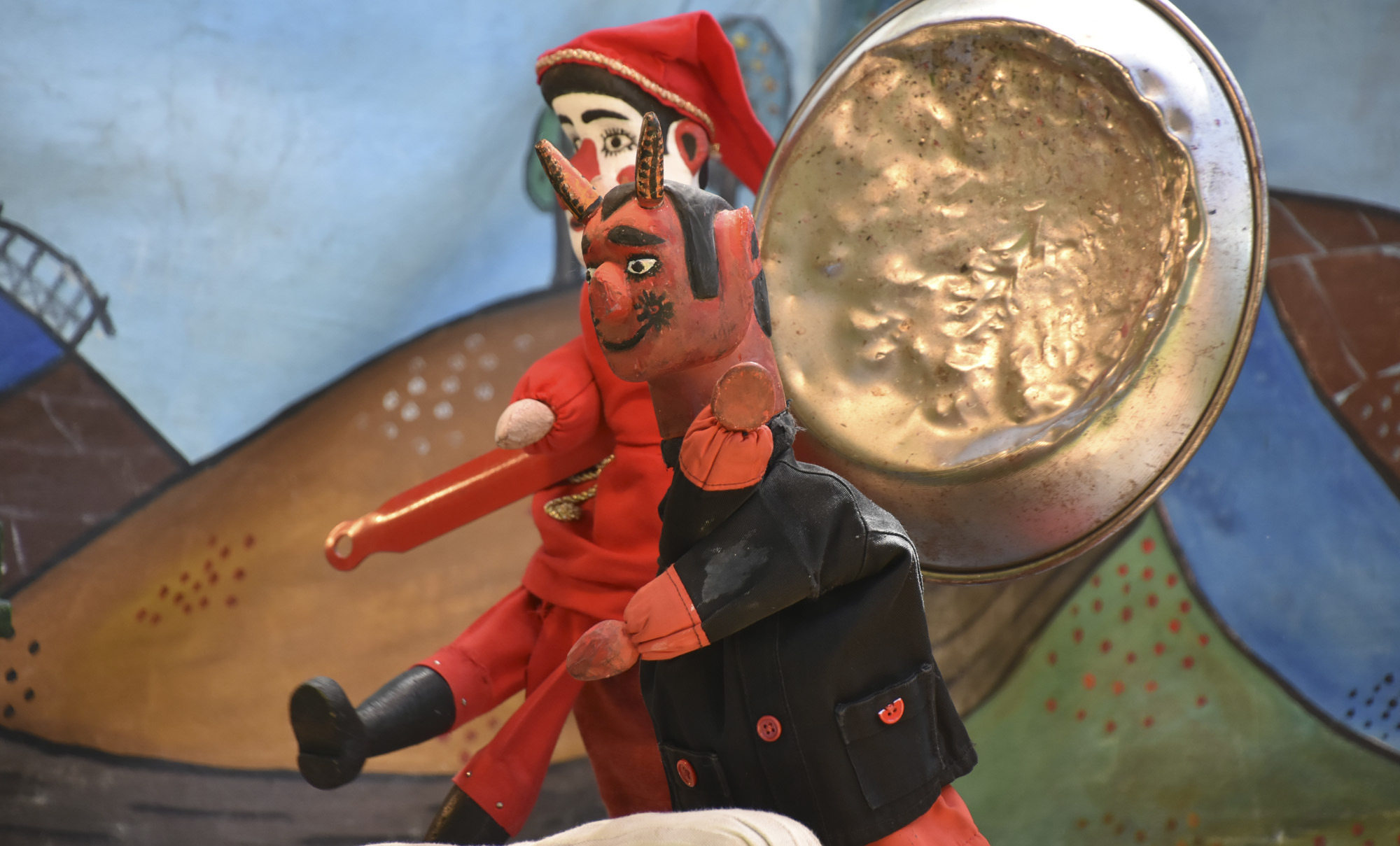 A hagyományos vásári bábjátékban a pirossipkás, vidám fickó palacsintasütőjével tanítja móresre az ördögöket és magát a halált is. Sziporkázó, életvidám kesztyűs bábjáték ez, melyet vásári mutatványok előznek meg.